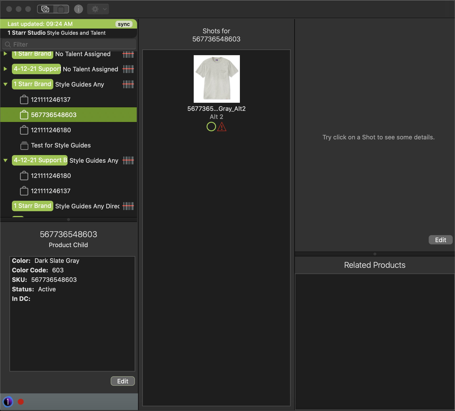 Style Guides related to shots will show in the Shot Icon in the Shots for Product Panel.