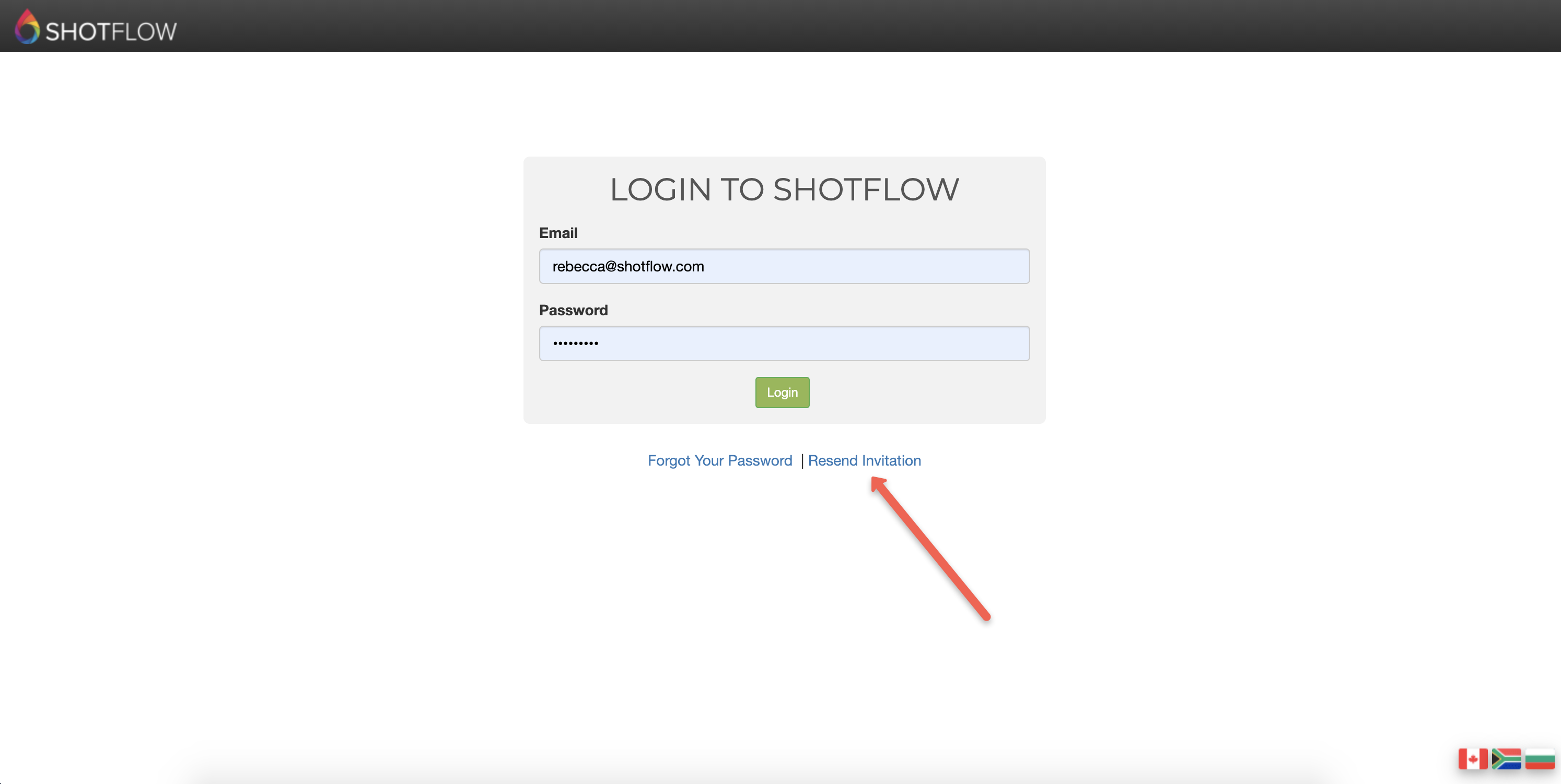2. From the Login Screen (you may need to logout to reach this screen), click on the "Resend Invitation" link that should appear under the empty field for password entry.