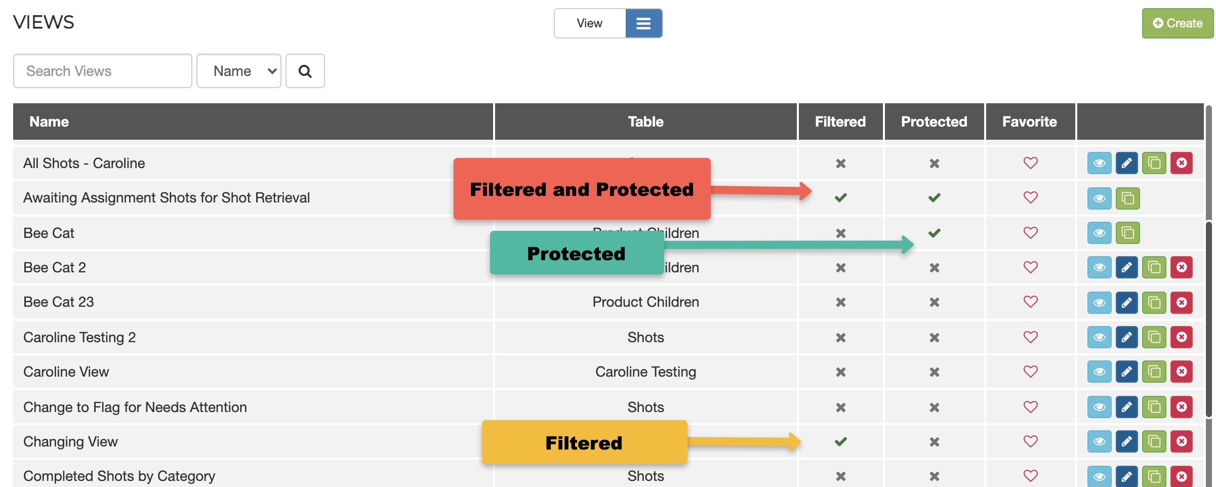 Every user has visibility to whether the View is Filtered or Protected. A Filtered View has preset criteria that includes or excludes desired data. A Protected View is not able to be edited by any user except those Roles with the permission to manage Protected Views.