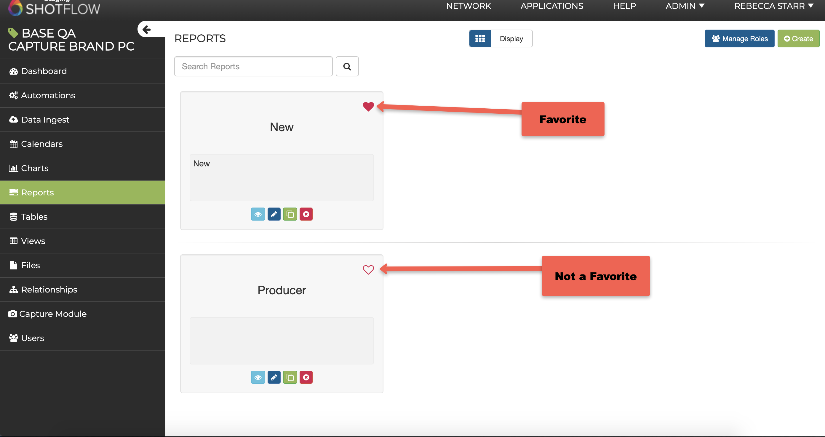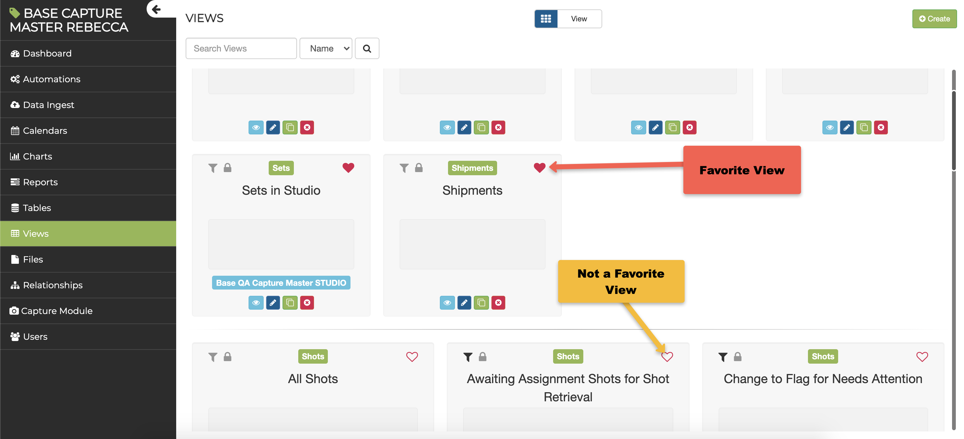 Each user is able to mark View(s), Chart(s), Report(s), Calendar(s), and Event(s) as a "Favorite." When any of these is chosen as a favorite, it will appear at the top of that section. Users can mark as many items as they would like as Favorites.